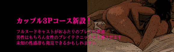 このコースは、おふたりのプレイにフルヌードのキャストが加わる形で進めます。3Pプレイも楽しめるこコースです。