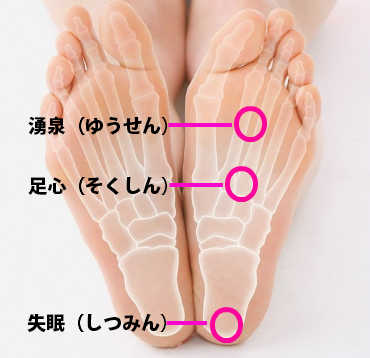 失眠(しつみん)はかかとの丸いふくらみの中央部。緊張をやわらげ、生殖器を活発にします。